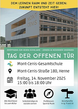 Wir öffnen wieder unsere Türen! Die Mont-Cenis-Gesamtschule lädt alle Schülerinnen und Schüler der 3./4. Klassen sowie zukünftige…