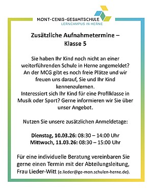 Sie haben Ihr Kind noch nicht an einer weiterführenden Schule in Herne angemeldet? An der MCG gibt es noch freie Plätze und wir freuen uns darauf, Sie…