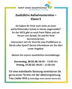 Zusätzliche Aufnahmetermine - Jahrgang 5