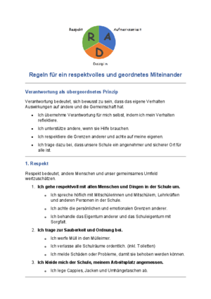 1. Ich gehe respektvoll mit allen Menschen und Dingen in der Schule um.